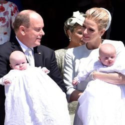 Alberto y Charlene de Mónaco en el bautizo de Jacques y Gabriella de Mónaco