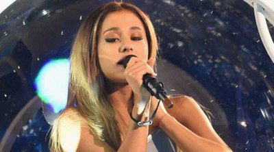 La cantante y actriz cayó de rodillas mientras bailaba su coreografía del tema 'Bang Bang' durante su último concierto en Toronto. Siguió como una profesional.