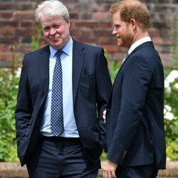 El Príncipe Harry y el Conde Spencer en la inauguración de la estatua de Lady Di