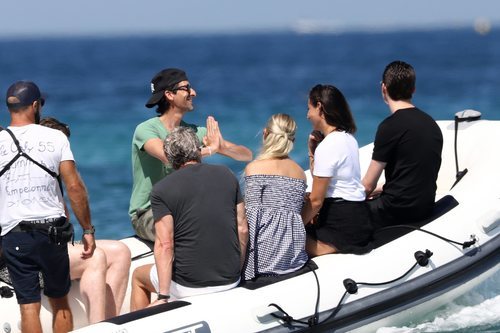 Adrien Brody con Natasha Polly su marido Peter Bakker montados en una lancha disfrutando de unas vacaciones en St Tropez.