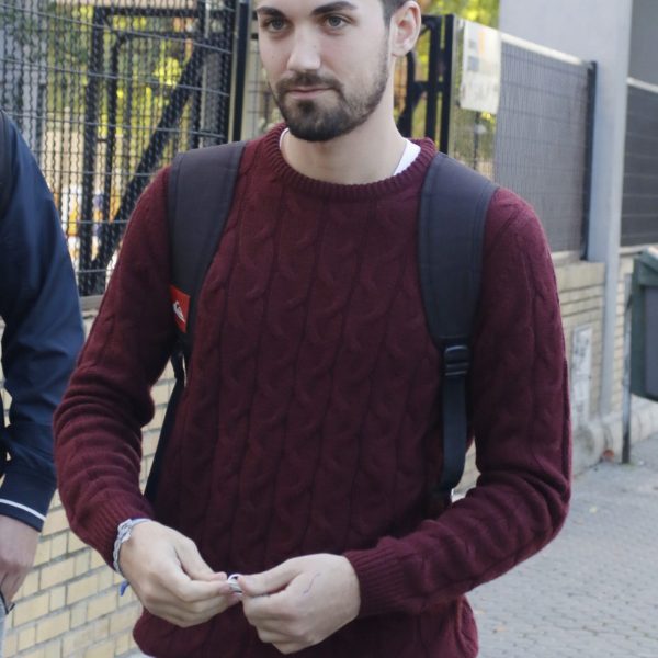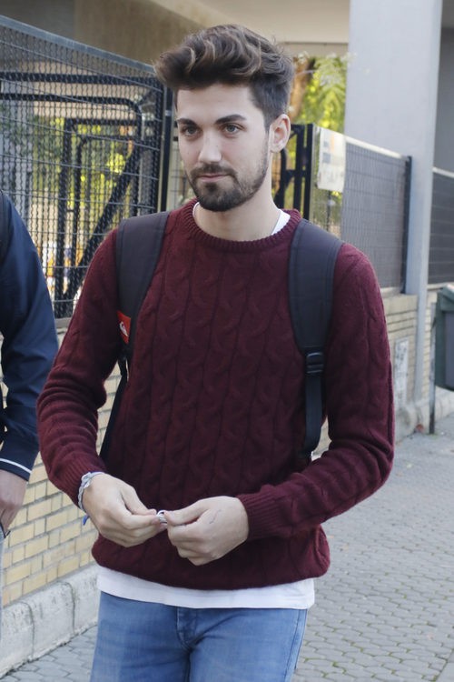 El joven Alejandro Albalá al salir de clase en Sevilla.