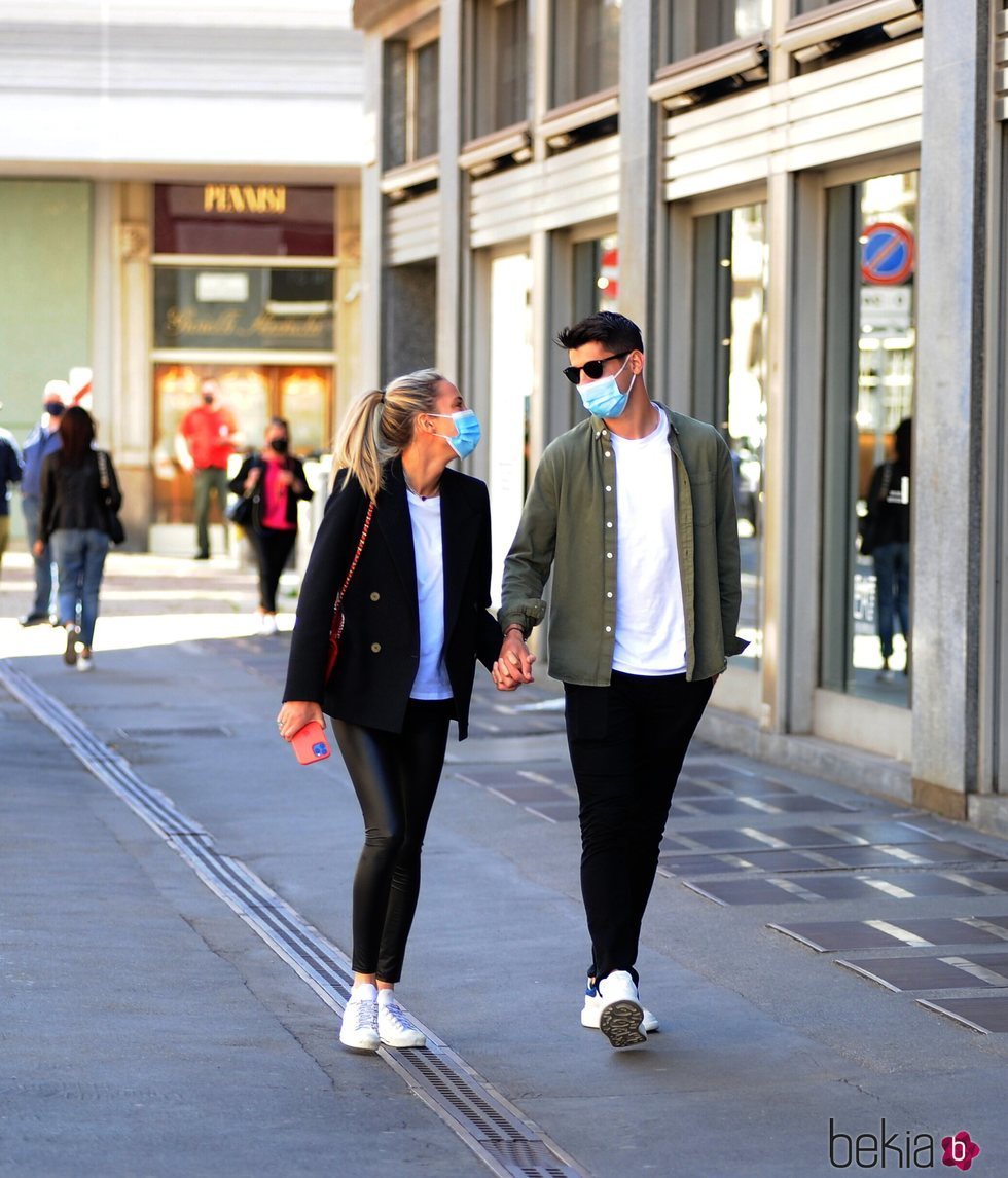 El matrimonio formado por Álvaro Morata y Alice Campello ha sido visto paseando por las calles de Turín mientras hacían unas compras.