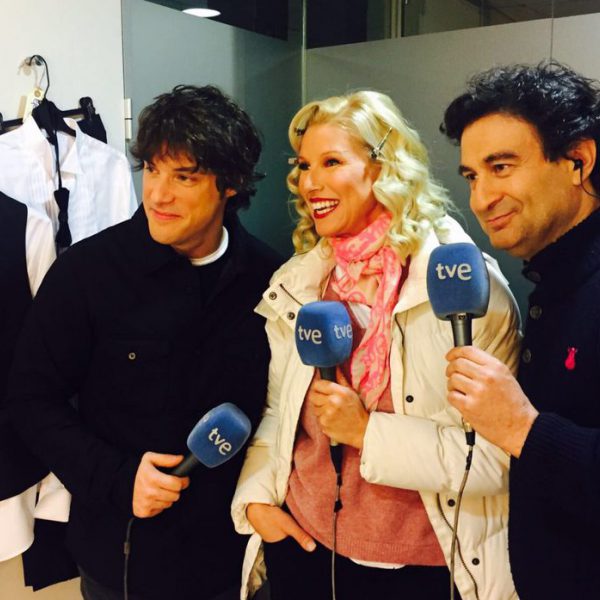 La presentadora de La 1 Anne Igartiburu horas antes de la retransmisión de las Campanadas 2016 junto a sus compañeros.