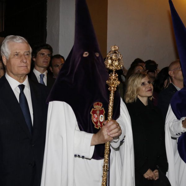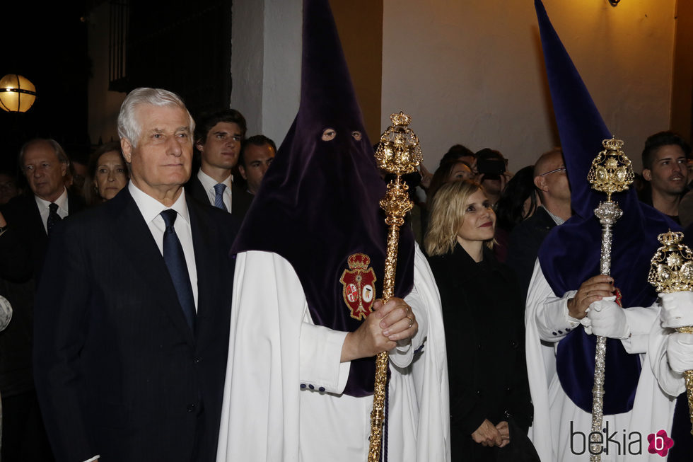 Eugenia Martínes de Irujo y el Duque de Alba Carlos Fitz-James Stuart en las procesiones de Jueves Santo 2017 de Sevilla.