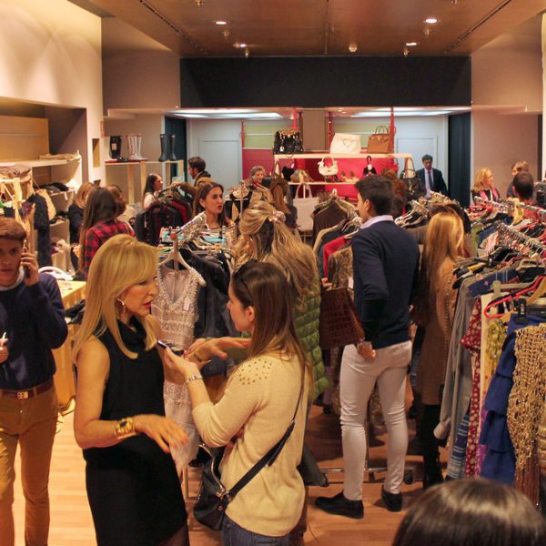 Carmen Lomana rodeada de visitantes en su mercadillo solidario 2013 en Madrid