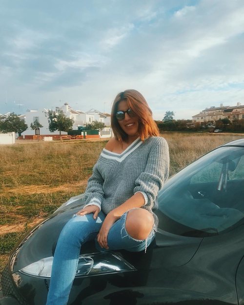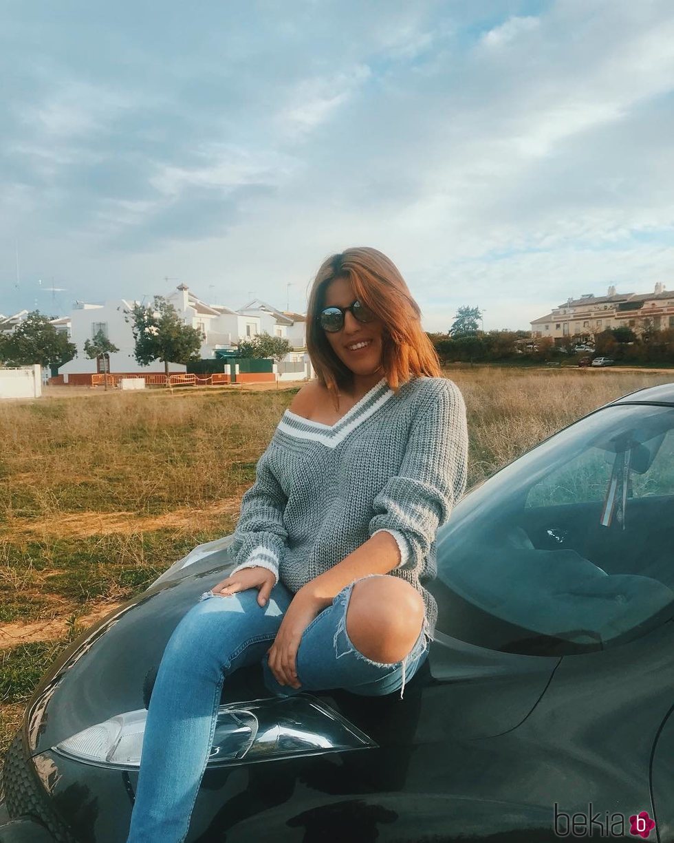 La hija de Isabel Pantoja, Chabelita Pantoja, posa en su cuenta de Instagram subida en el capó de un vehículo negro.