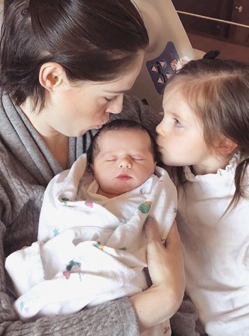 La modelo Coco Rocha junto a sus dos hijos, Ioni James e Iver Eames Conran, tras haber dado a luz a este último, el 20 de abril de 2018.