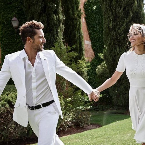 El ya matrimonio formado por David Bisbal y Rosana Zanetti disfrutó de una preciosa sesión de fotos con varios looks durante el día de su boda.
