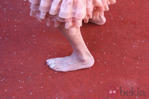 Doña Cayetana de Alba sin zapatos para bailar a la entrada del Palacio de las Dueñas en Sevilla, donde ha celebrado su boda con Alfonso Díez.