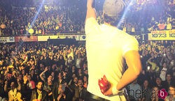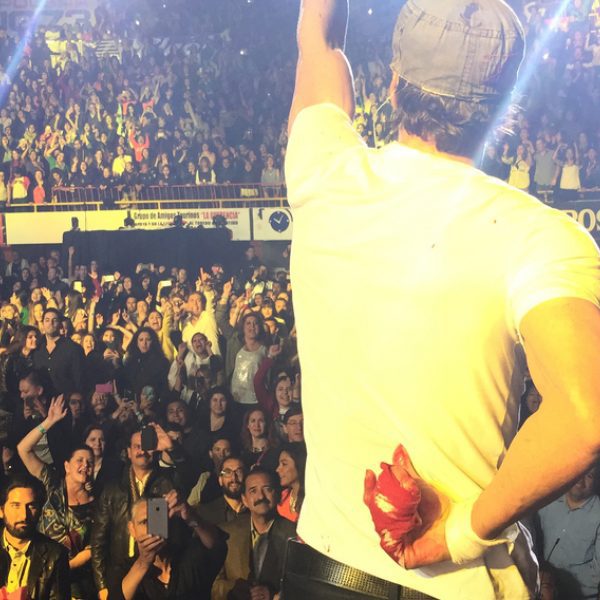 El cantante Enrique Iglesias vendado, tras sufrir un accidente en un concierto en Tijuana.