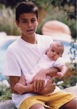 Enrique Iglesias sosteniendo en brazos a su hermana Ana Boyer cuando era un bebé.