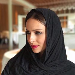 La presentadora ha querido compartir con sus seguidores una fotografía posando con un hiyab negro, velo típico que llevan algunas mujeres en la religión musulmana.