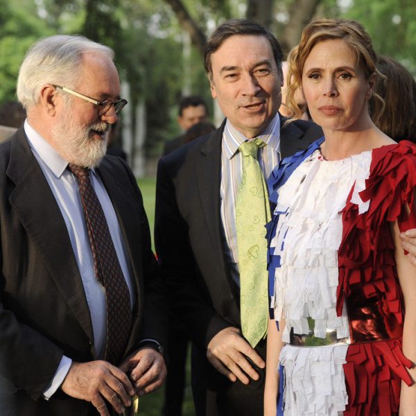 La diseñadora Ágatha Ruiz de la Prada y su marido el periodista Pedro J. Ramírez en un acto público en Madrid junto al político Miguel Arias Cañete