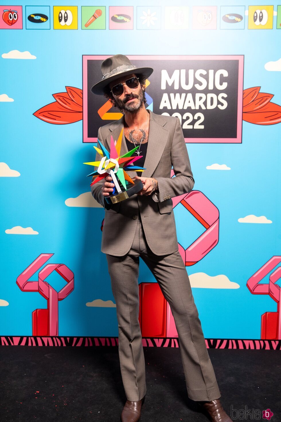 Leiva es fotografiado posando muy feliz con su premio de Los 40 Music Awards 2022, un Golden de lo más importante.