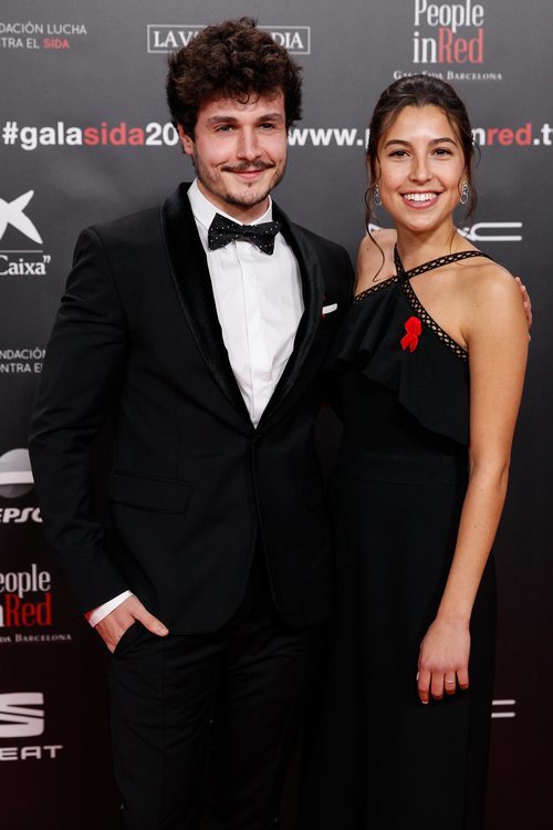 La pareja de cantantes, Miki Núñez y Sara Roy, en la alfombra roja de la gala contra el SIDA People in Red 2019 celebrada el 18 de noviembre.