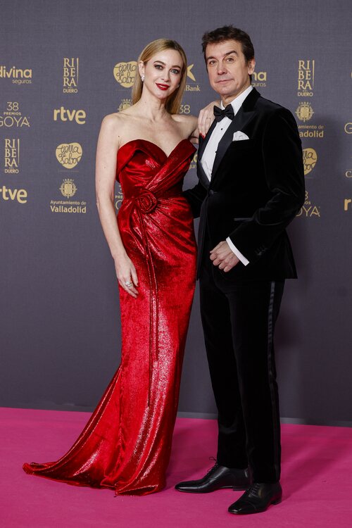 Marta Hazas y Javier Veiga son fotografiados posando de lo más elegantes en la alfombra roja de los Premios Goya 2024 en Valladolid.