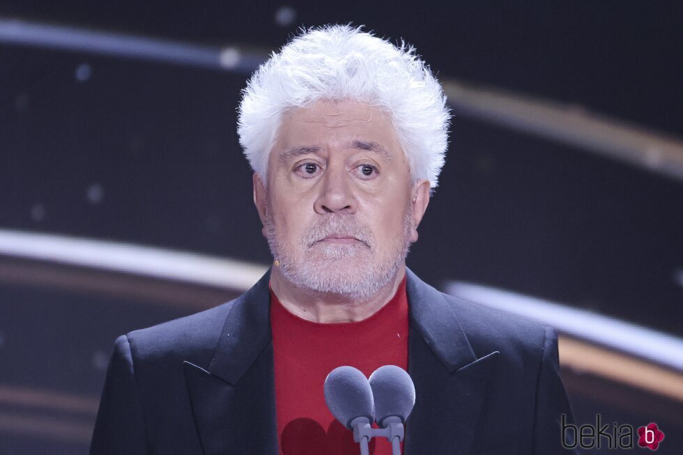 Pedro Almodóvar es fotografiado visiblemente serio durante la gala de los Premios Goya 2024 lanzando un mensaje a un político.