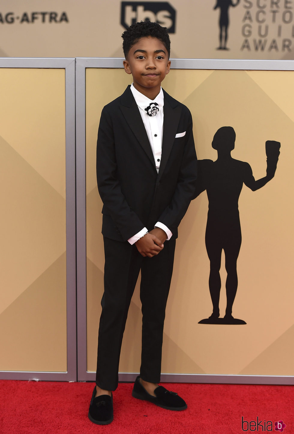 El actor Miles Brown posando en la alfombra roja a su llegada a la entrega de Premios del Sindicato de Actores 2018.