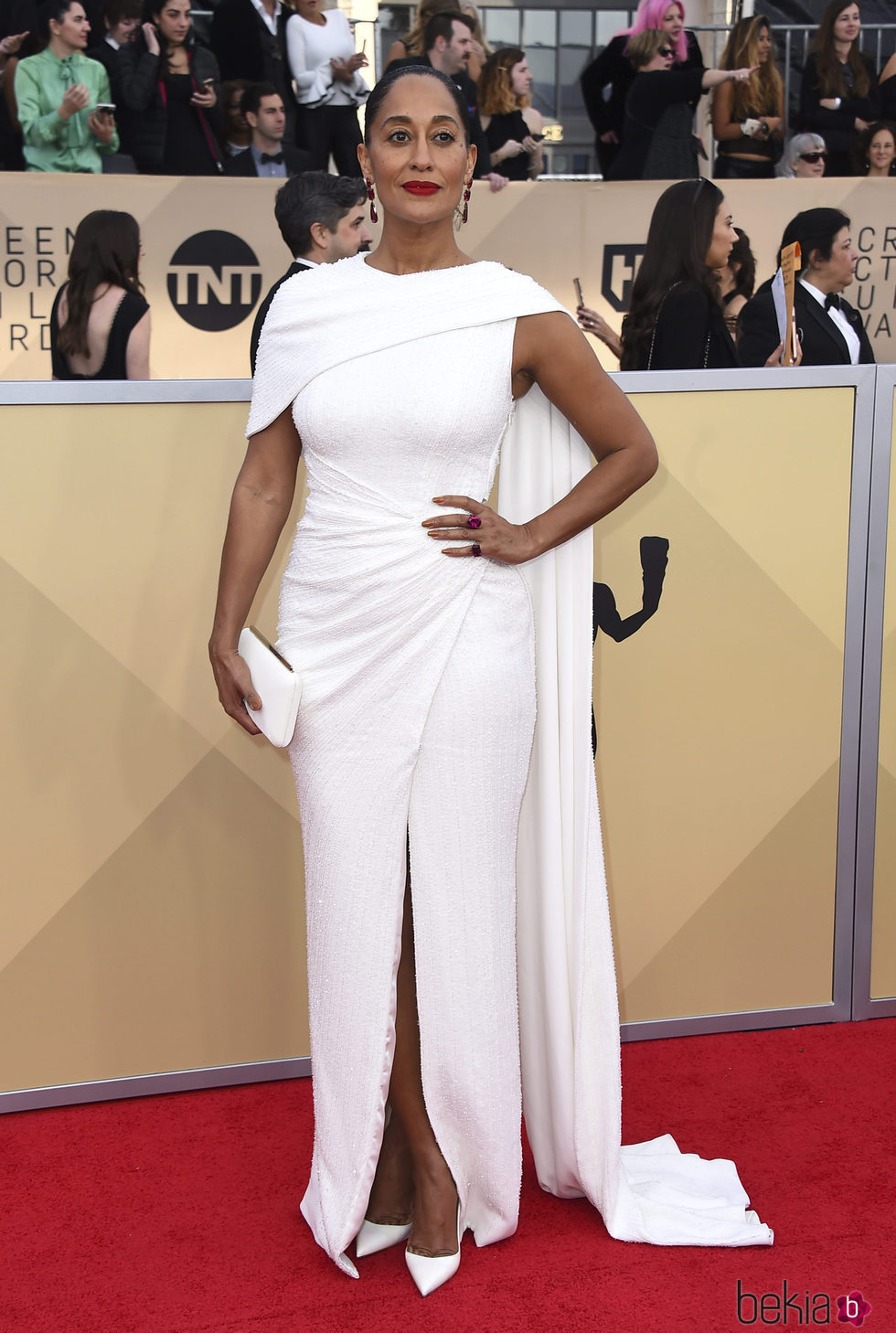 La actriz Tracee Ellis Ross posando en la alfombra roja a su llegada a la entrega de Premios del Sindicato de Actores 2018.