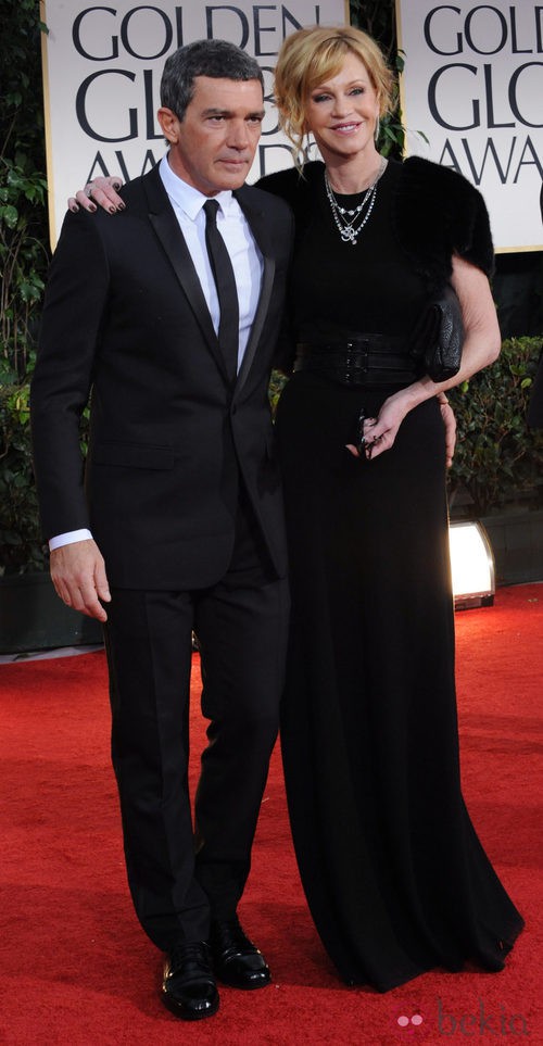 El actor Antonio Banderas y su mujer Melanie Griffith en los Globos de Oro 2012