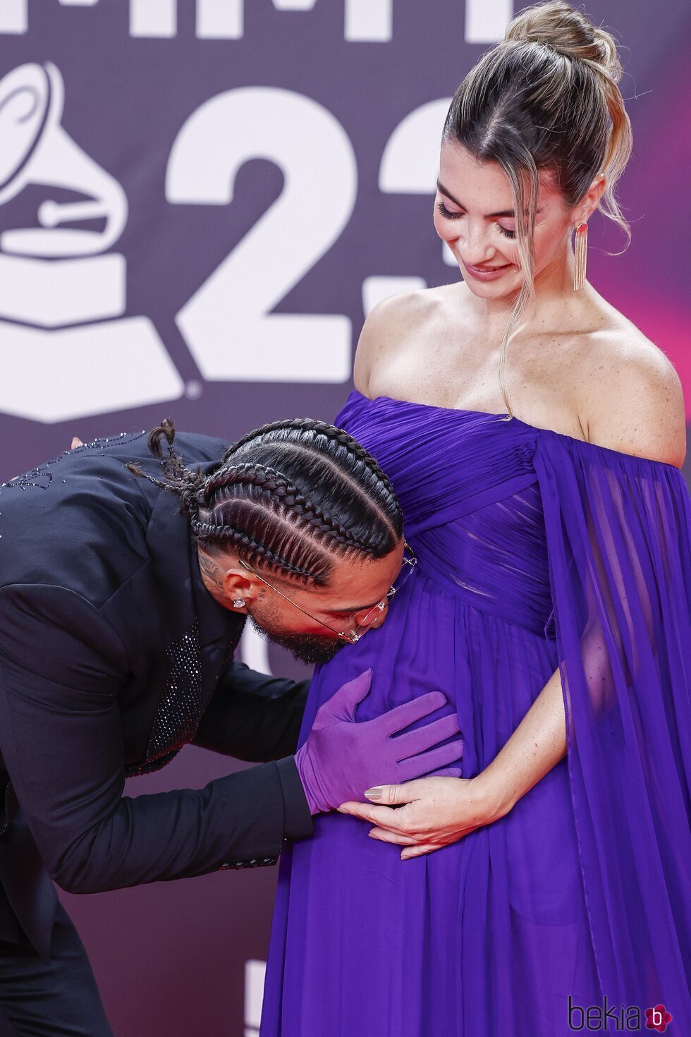 Maluma ha sido fotografiado besando la barriguita de embarazada de su novia en la alfombra roja de los Grammy Latinos 2023.