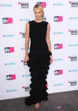 Charlize Theron con un vestido negro en los premios Critics Choice 2012.