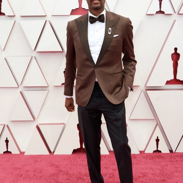 Charles D. King es fotografiado posando en la alfombra de los Premios Oscar 2021 con una chaqueta en color marrón.