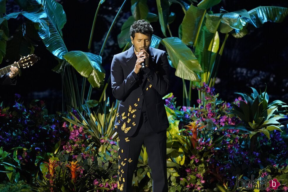 El cantante Sebastián Yatra actuando en la gala de los Premios Oscar 2022 interpretando 'Dos Oruguitas', canción nominada por la película 'Encanto'.
