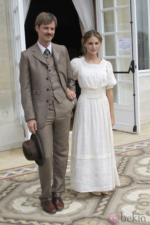 Eloy Azorín y Amaia Salamanca, que interpretan a los hermanos Alarcón, en la presentación de la serie 'Gran Hotel'.