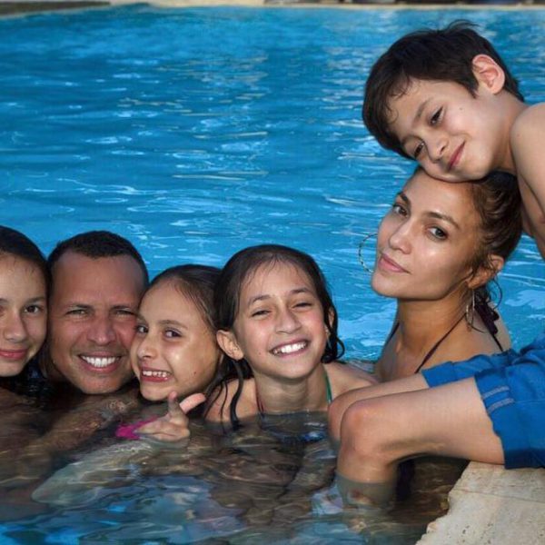 La cantante y actriz Jennifer López publica en su cuenta de Instagram una foto muy familiar en la piscina junto a sus hijas y Alex Rodríguez, su novio.