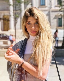 Anita Matamoros es fotografiada con un look de lo más moderno y la melena suelta en plena calle como una influencer que es.