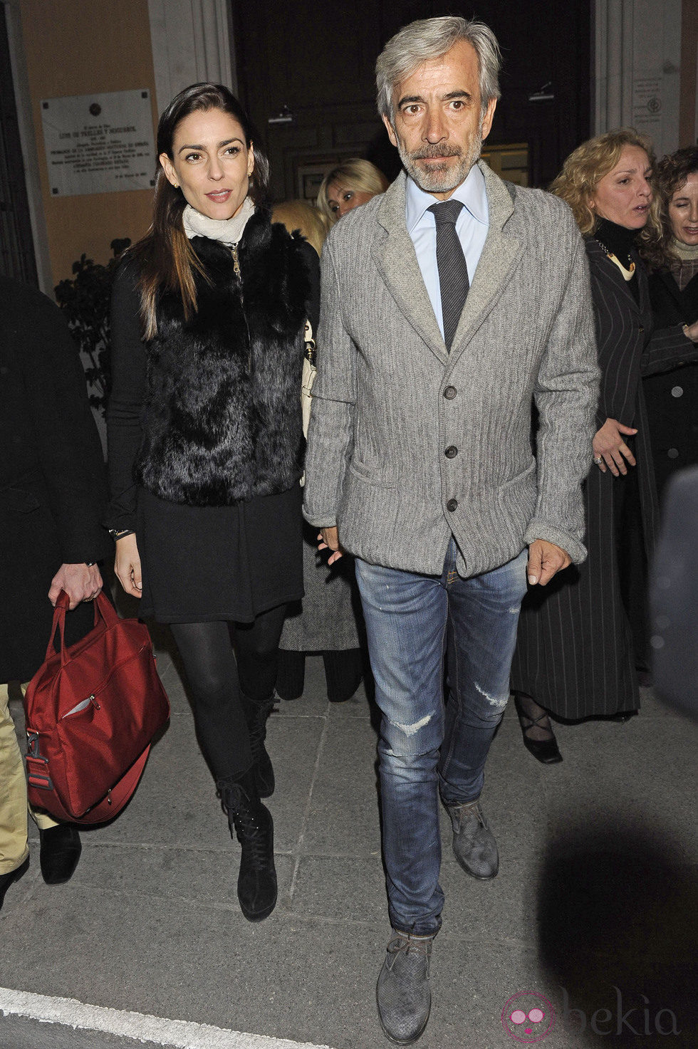 El actor Imanol Arias y su novia Irene Meritxell en la misa funeral en memoria de Pepe Sancho