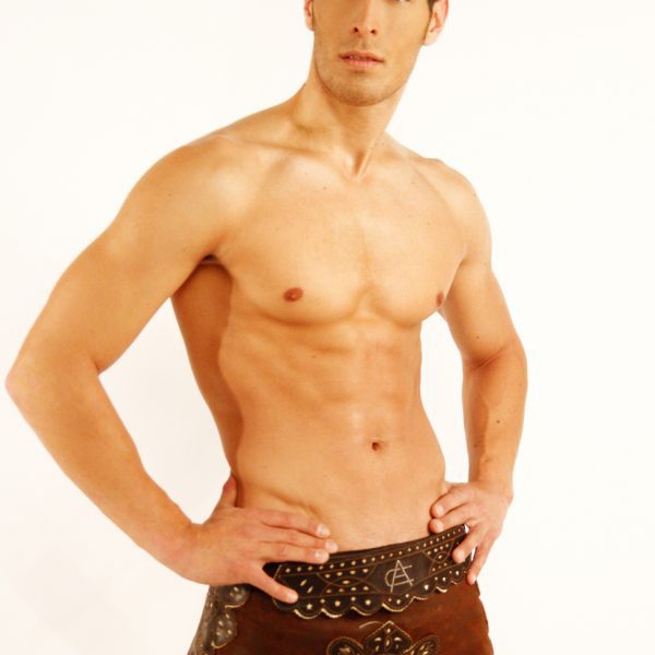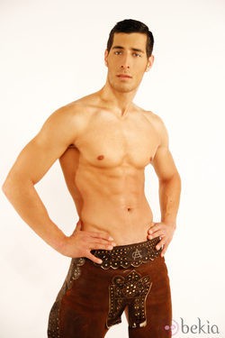 Míster León 2010 y candidato a Míster España 2011, Néstor Reinaldo, posa con el torso desnudo en la foto oficial de baño del certamen.