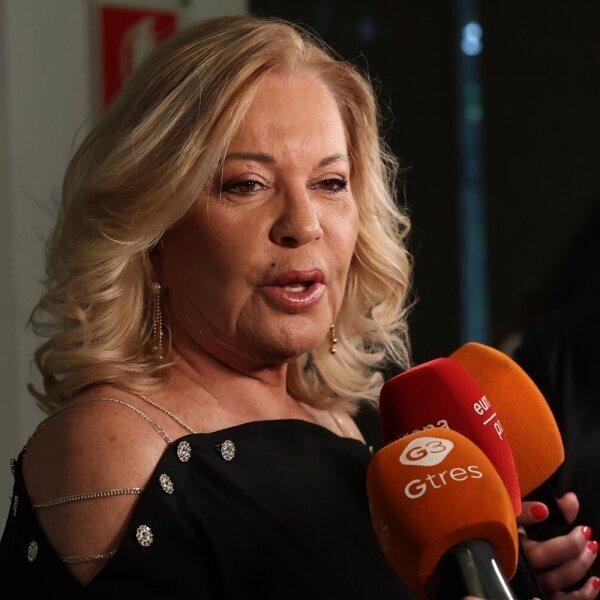 Bárbara Rey atendiendo a los medios en la entrega de los Premios Naranja y Limón 2023 la Peña de Periodistas Primera Plana.
