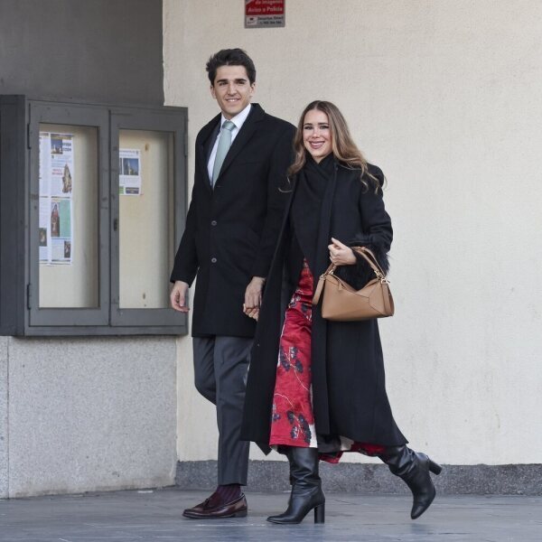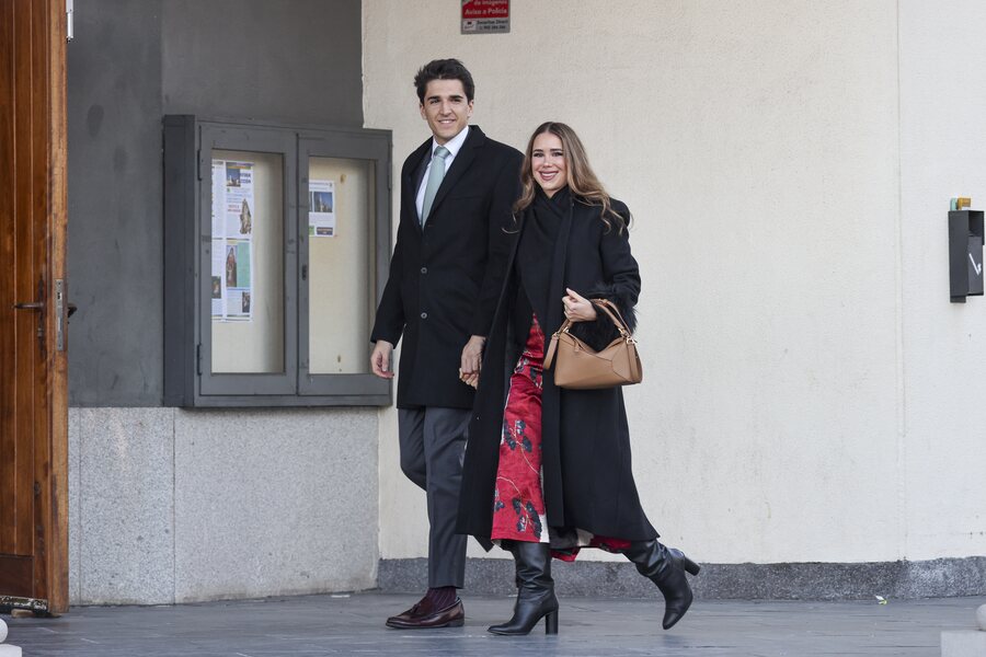 La pareja formada por Javier García-Obregón Lago y Eugenia Gi en el bautizo de Ana Sandra en la Parroquia de Nuestra Señora de la Moraleja.