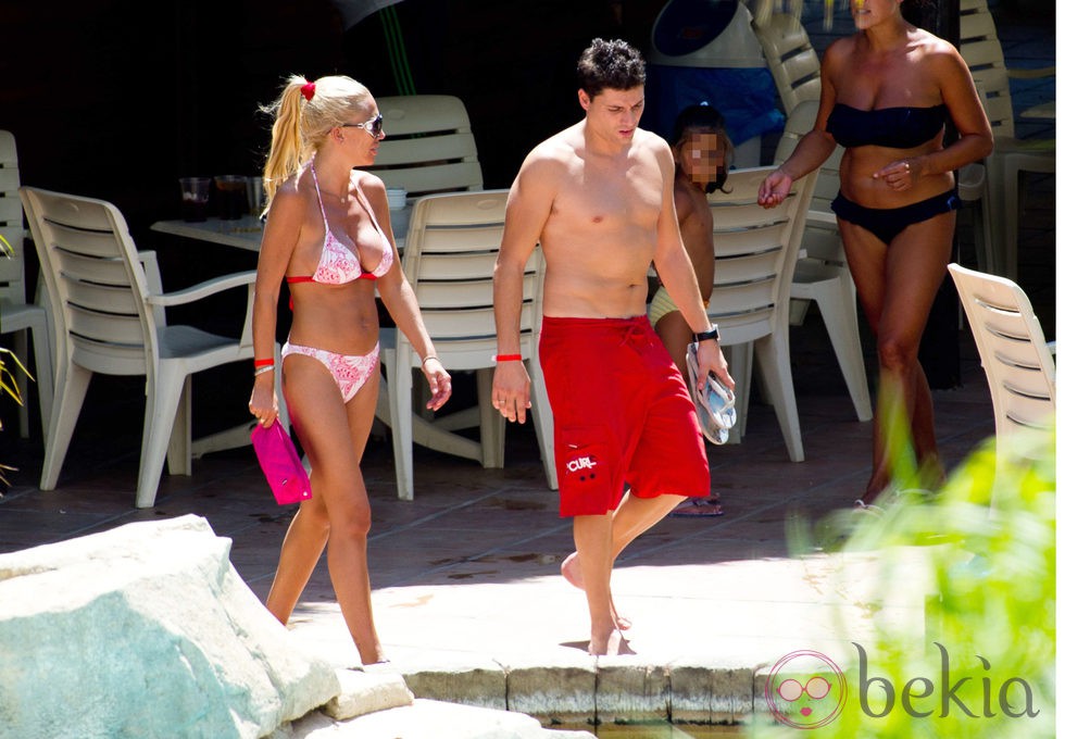 La copresentadora de 'Sálvame' Belén Esteban y su marido el camarero Fran Álvarez paseando por Benidorm