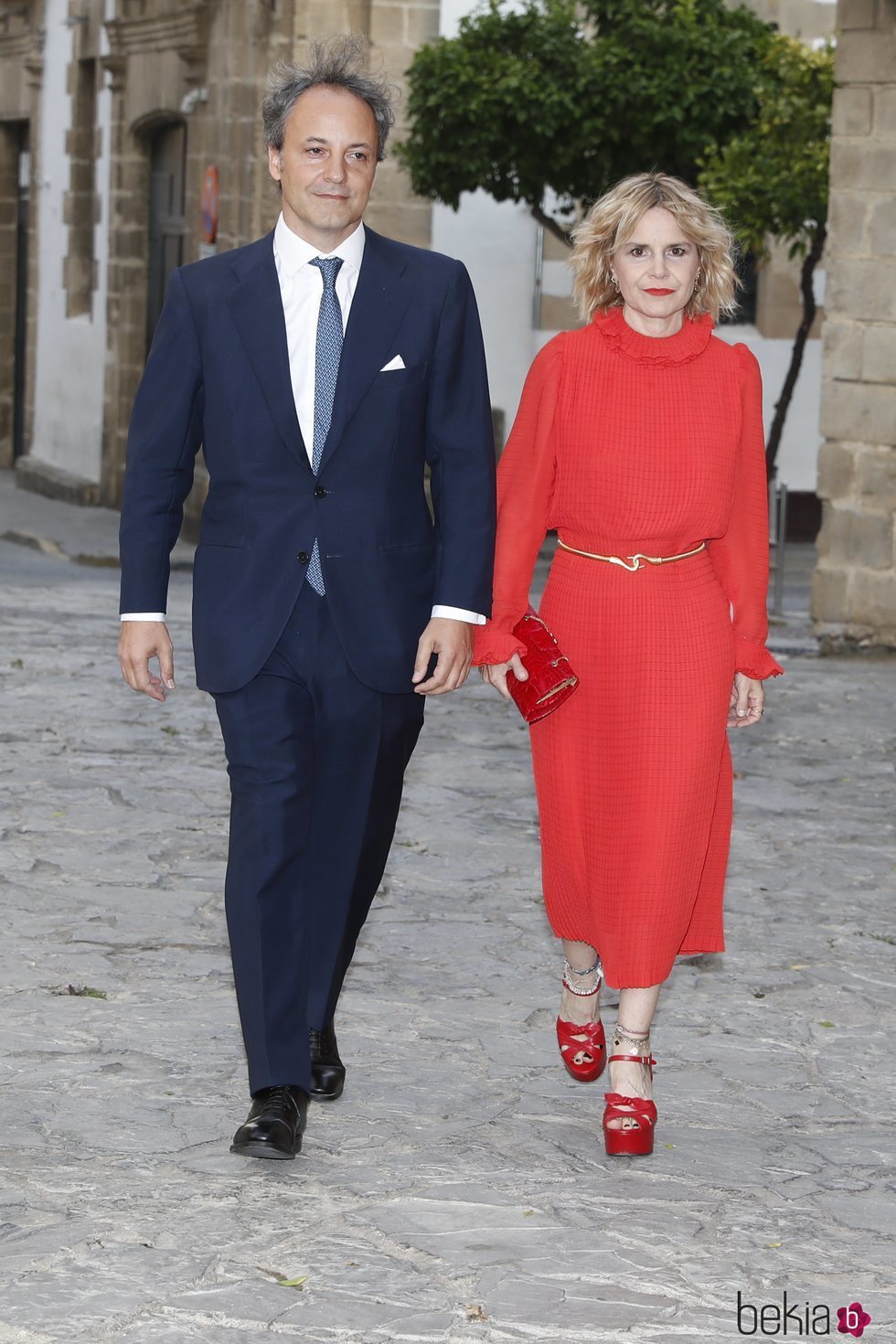 Eugenia Martínez de Irujo y Narcís Rebollo llegaban así de sonrientes a la boda de Ainhoa Arteta y Matías Urrea.