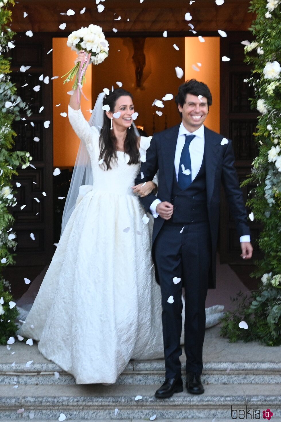 El recién estrenado matrimonio formado por Álvaro Castillejo y Cristina Fernández ha posado delante de los invitados en su salida de la iglesia en Sotogrande.