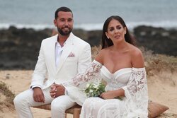 La colaboradora Anabel Pantoja y Omar Sánchez en un momento de la celebración de su boda el 1 de octubre de 2021 en La Graciosa.