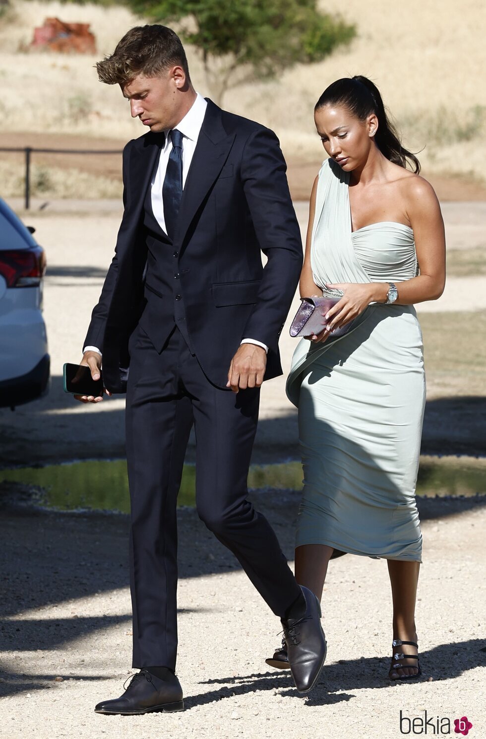 Marcos Llorente y su mujer son fotografiados de lo más elegantes en la boda de Dani Carvajal y Daphne Cañizares.