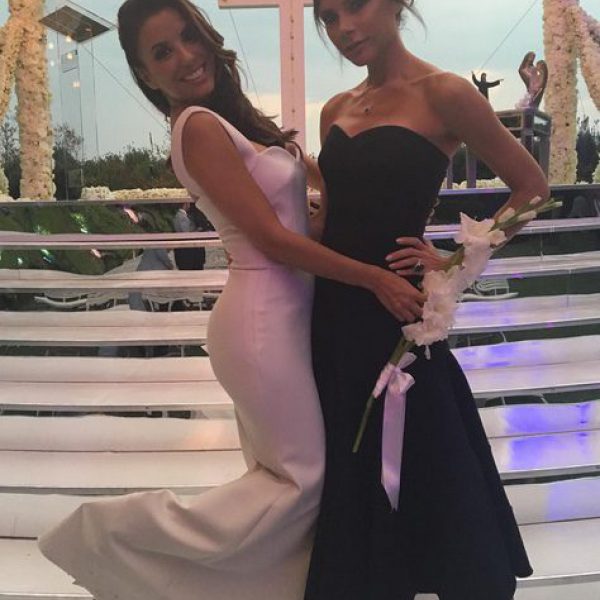 La actriz Eva Longoria con su gran amiga la diseñadora Victoria Beckham el día de su boda con José Bastón