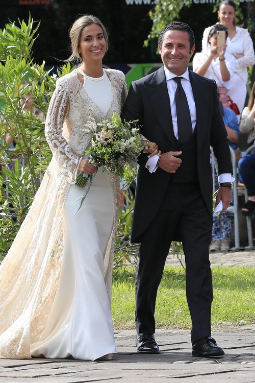 María Pombo es fotografiada llegando a la iglesia del brazo de su padre, donde ha contraído matrimonio con Pablo Castellano.