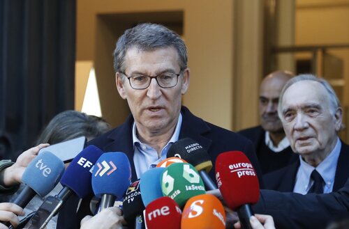 El líder del Partido Popular Alberto Núñez Feijó ha sido una de las personas que ha estado presente en la capilla ardiente de Carlos Saura en Madrid.