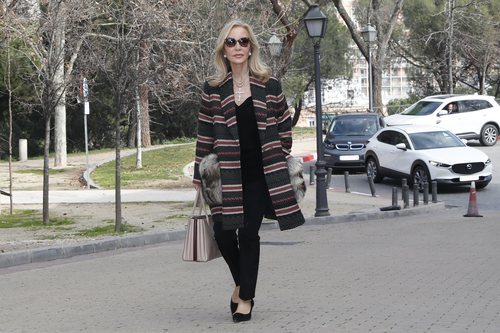 La celebrity Carmen Lomana a su llegada a la capilla ardiente de la aristócrata Cristina de Borbón von Hardenberg en Madrid.