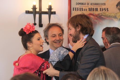 Cayetana Rivera, Narcís Rebollo y Rosauro Varo se saludan efusivamente en la Feria de Abril 2018 donde coincidieron.