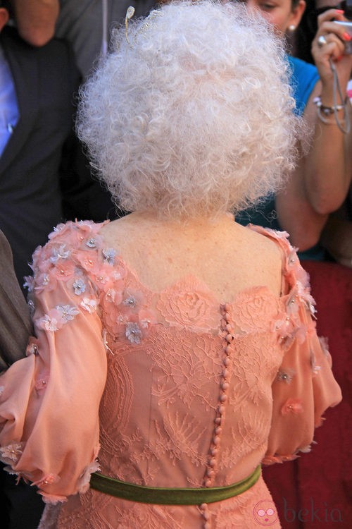 Detalle del vestido de la Duquesa de Alba, diseñado por los sevillanos Victorio y Lucchino
