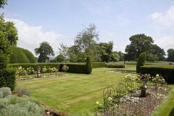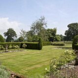 Jardín lateral y pequeño lago de Chyknell Hall, el palacete inglés comprado por Corinna Larsen en 2015, ubicado en Inglaterra, y que ha puesto a la venta.