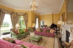 Uno de los tres salones, en tonos amarillo y de estilo victoriano, de Chyknell Hall, el palacete inglés comprado en 2015 por Corinna Larsen en Inglaterra.