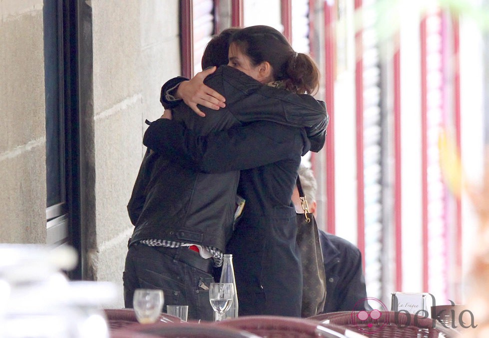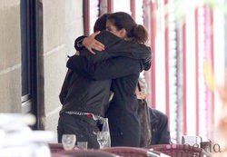 Los actores Clara Lago y Ferrán Vilajosana se despiden con un abrazo tras su cita en Madrid.