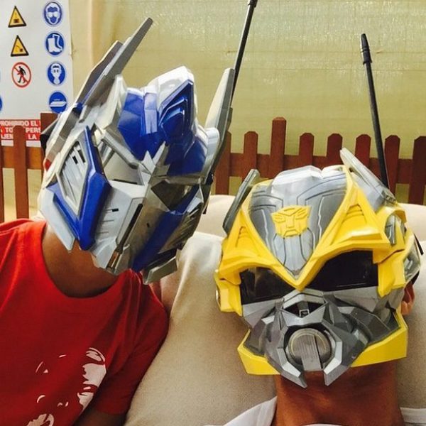 Cristiano Ronaldo y Cristiano Ronaldo Junior juegan a Transformers con caretas incluidas.